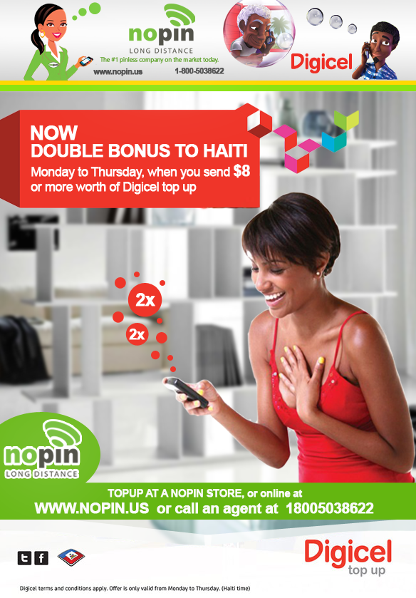 Nopin Long Distance On Twitter Wow Nopin Topup Digicel Haiti Relatives Get Double Bubble 2x Bonus Free Intl Calls Monday To Thursday Https T Co Kd0fo1p3qn