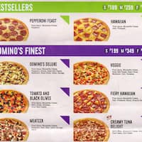 Closed Pizza Costs PHP500 for two Overview Menu Reviews 38 Photos 38 Dominos Pizza Menu. Dominos Pizza in Sampaloc offers a menu with over 33 items such as hawaiian classic. Huge pie cut into 8 extra-large slices.