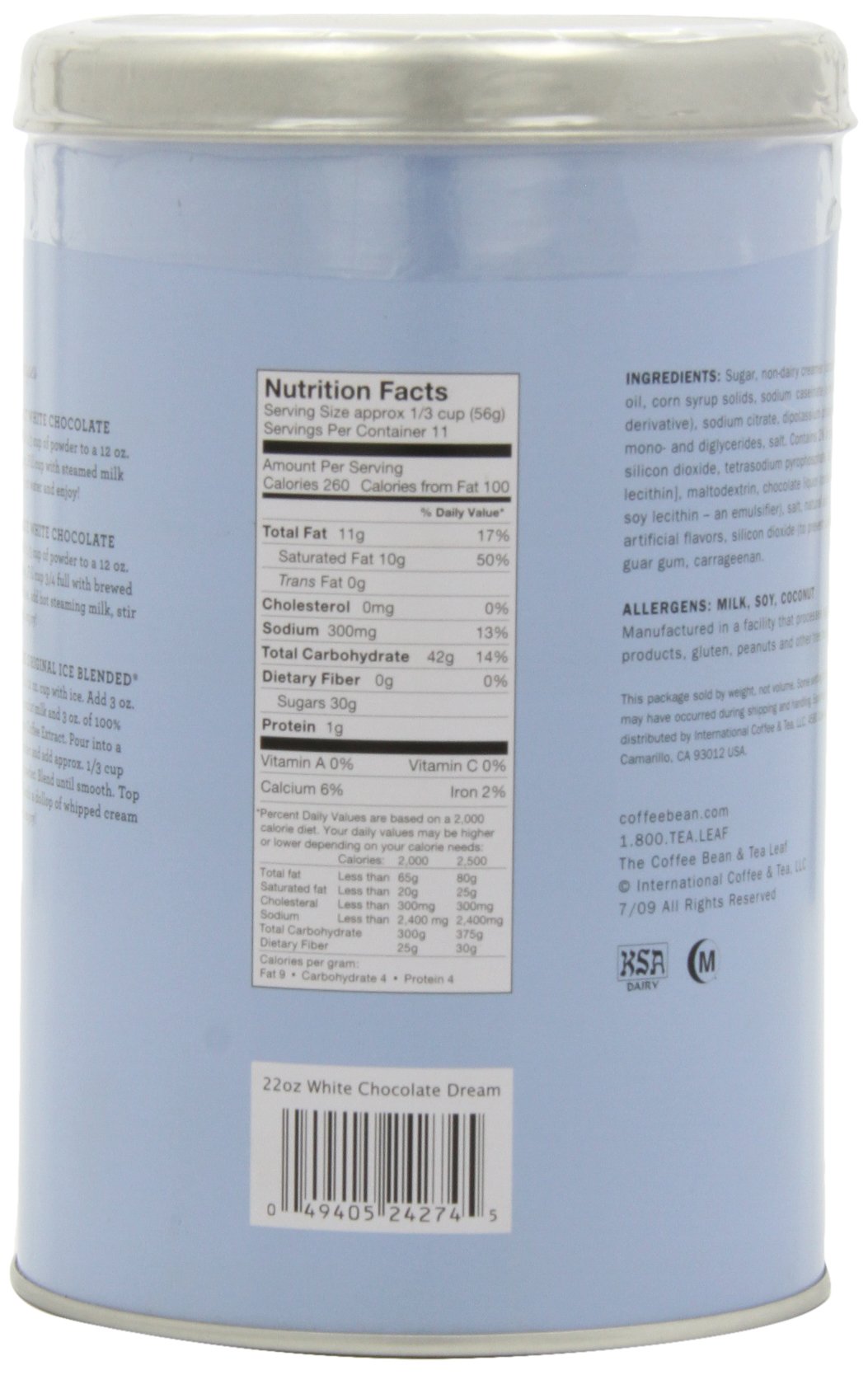 Coffee Bean Tea Leaf is the largest and most successful privately held niche coffee and tea company in the United States. 1 cup 8 fl oz 0. The Daily Value DV tells you how much a nutrient in a serving of food contributes to a daily diet.