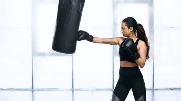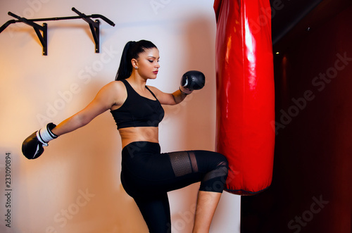 Kick Boxing Female Boxer Concept Girl Kicking Punching Bag In Gym Stock Photo Adobe Stock